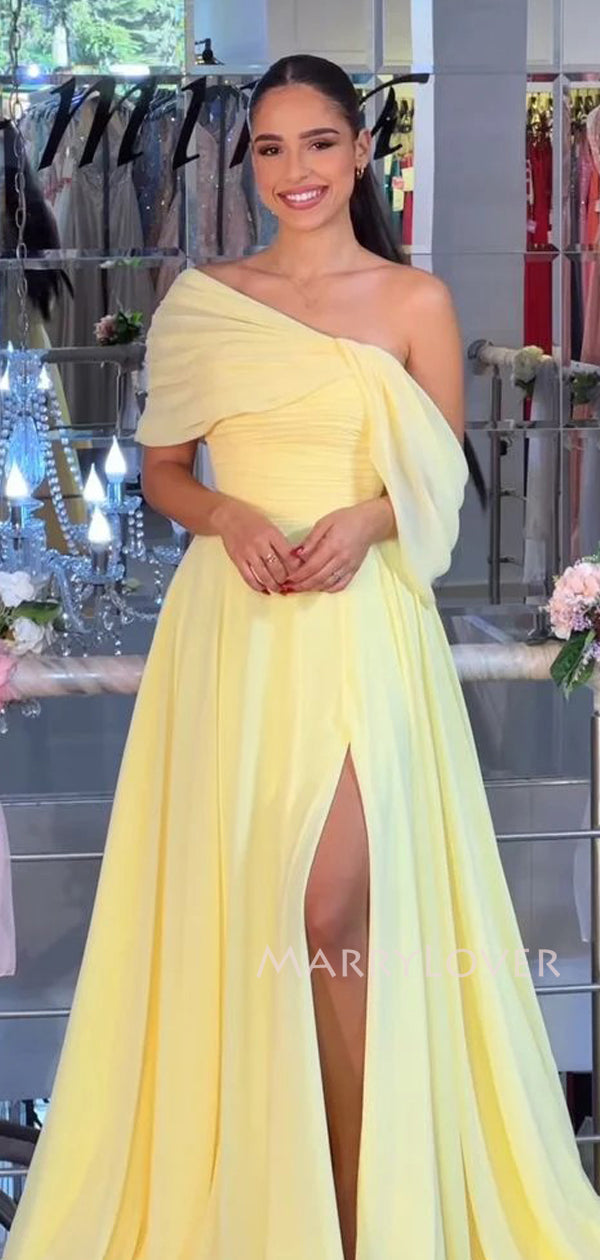 A-line Yellow Chiffon Side Slit Long Evening Prom Dresses, Off Shoulder Prom Dress, MR9535 A-line Yellow Chiffon Side Slit Long Evening Prom Dresses, Off Shoulder Prom Dress, MR9535