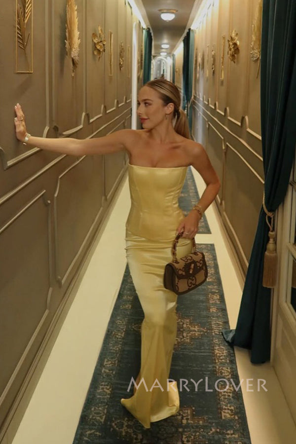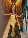 Formal Gold Satin Mermaid Long Strapless Evening Prom Dresses Mermaid, MR0005
