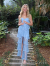 Gorgeous Blue Lace Spaghetti Straps Slit Long Evening Prom Dresses, MR9777