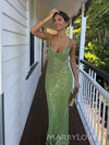 Green Sequins Mermaid Spaghetti Straps Long Evening Prom Dresses, MR9556