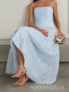 Morden Blue Tulle Simple Strapless Long Evening Prom Dresses, MR9745 Morden Blue Tulle Simple Strapless Long Evening Prom Dresses, MR9745
