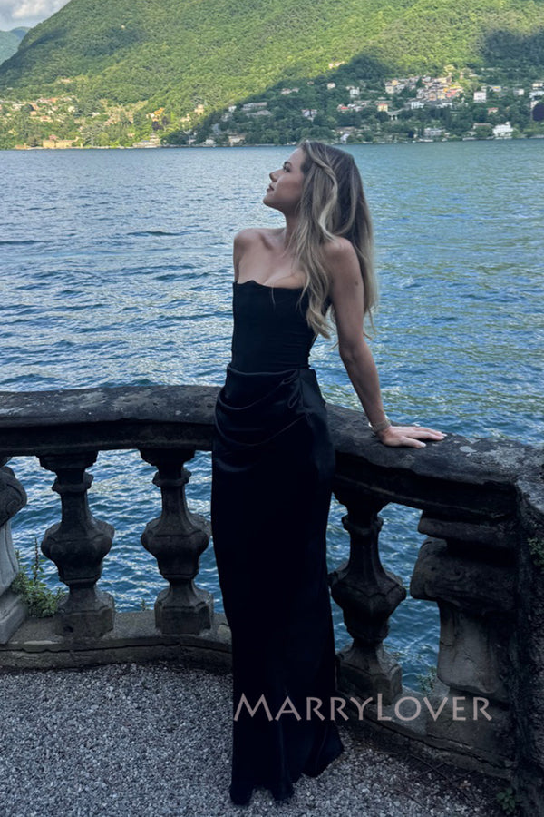 Popupar Strapless Black Satin Mermaid Long Evening Prom Dresses, MR0040 Popupar Strapless Black Satin Mermaid Long Evening Prom Dresses, MR0040