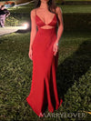 Sexy Deep V-neck Spaghetti Straps Red Satin Long Mermaid Evening Prom Dresses, MR9794 Sexy Deep V-neck Spaghetti Straps Red Satin Long Mermaid Evening Prom Dresses, MR9794