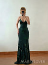 Sexy V-neck Mermaid Dark Green Tulle Appliques Long Evening Prom Dresses, MR9562 Sexy V-neck Mermaid Dark Green Tulle Appliques Long Evening Prom Dresses, MR9562
