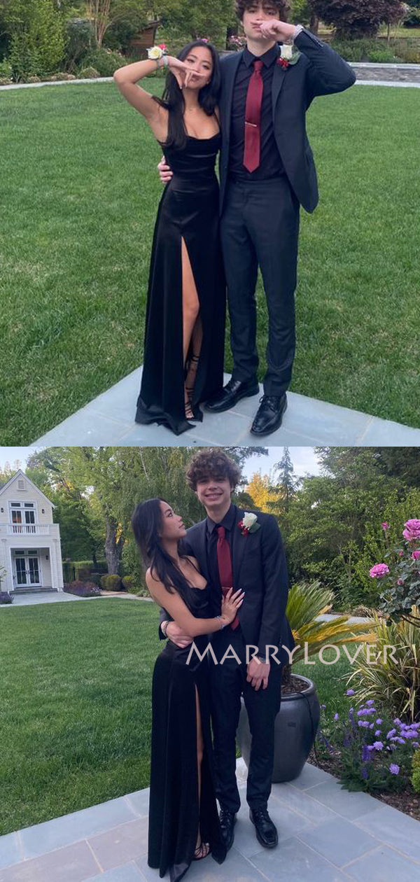 Simple Black Satin High Slit Long Evening Prom Dresses, MR9788 Simple Black Satin High Slit Long Evening Prom Dresses, MR9788