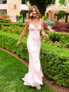 Simple Spaghetti Straps Mermaid Pink Long Evening Prom Dresses, MR9590