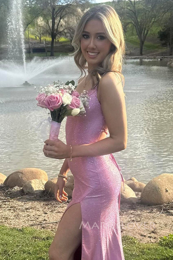 V-neck Mermaid Sparkly Long Evening Prom Dresses, Side Slit Prom Dress, MR0146