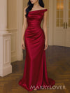 One Shoulder Mermaid Burgundy Satin Long Evening Prom Dresses, MR9445