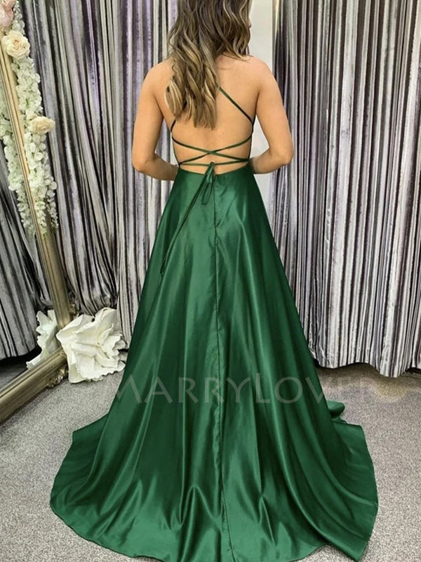 Evening Party Dresses, A-Line Satin Long Evening Prom Dresses, MR7018