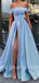 Off Shoulder Blue Side Slit Long Evening Prom Dresses, MR7039