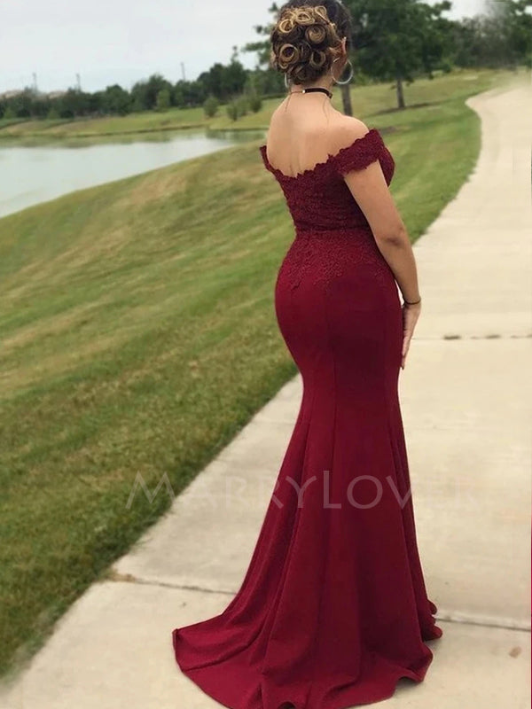Sexy Off Shoulder Lace Mermaid Long Evening Prom Dresses, MR7059