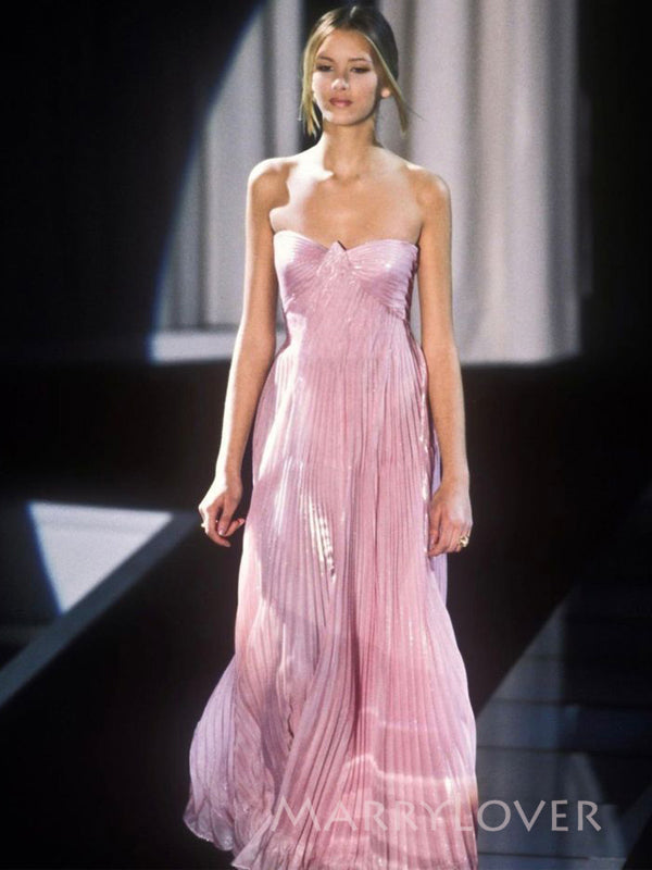 Sweetheart Pink Long Evening Prom Dresses, A-line Strapless Prom Dress, MR9582