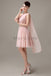 Octavia is a short one-shoulder dress in chiffon, which is suitable for a summer wedding.