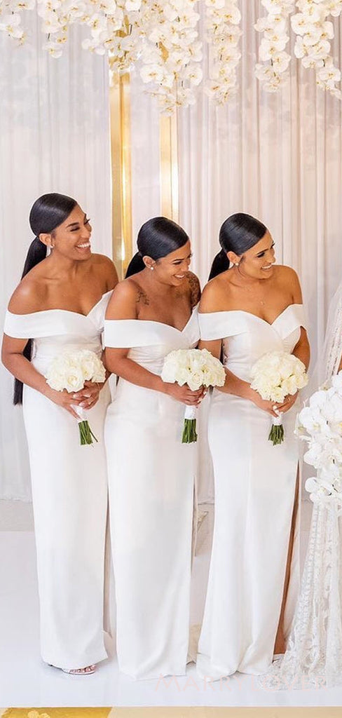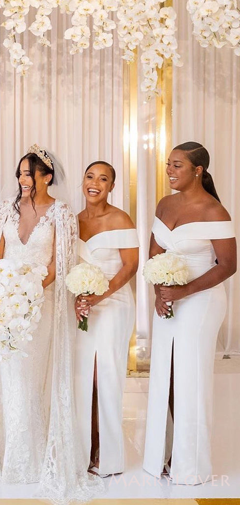 Off Shoulder White Side Slit Long Mermaid Custom Bridesmaid Dresses , BN1185 Off Shoulder White Side Slit Long Mermaid Custom Bridesmaid Dresses , BN1185