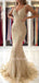 Champagne Gold Mermaid V Neck Lace Long Evening Prom Dresses, MR7228 Champagne Gold Mermaid V Neck Lace Long Evening Prom Dresses, MR7228