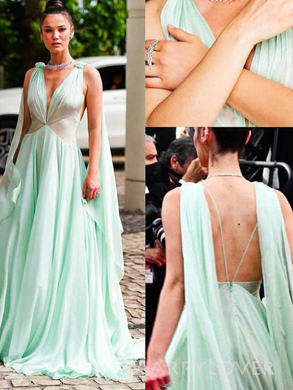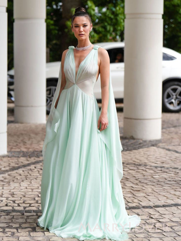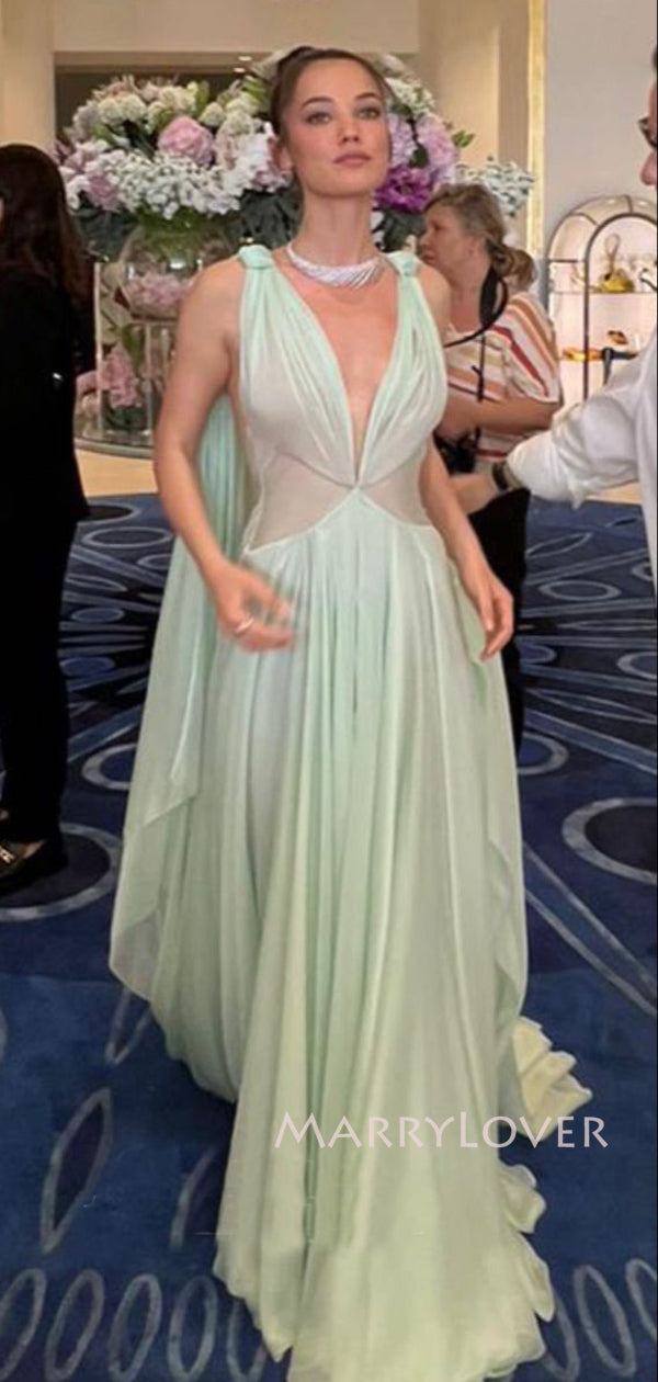 Deep V-neck A-line Sage Green Chiffon Long Evening Prom Dresses, MR9424 Deep V-neck A-line Sage Green Chiffon Long Evening Prom Dresses, MR9424