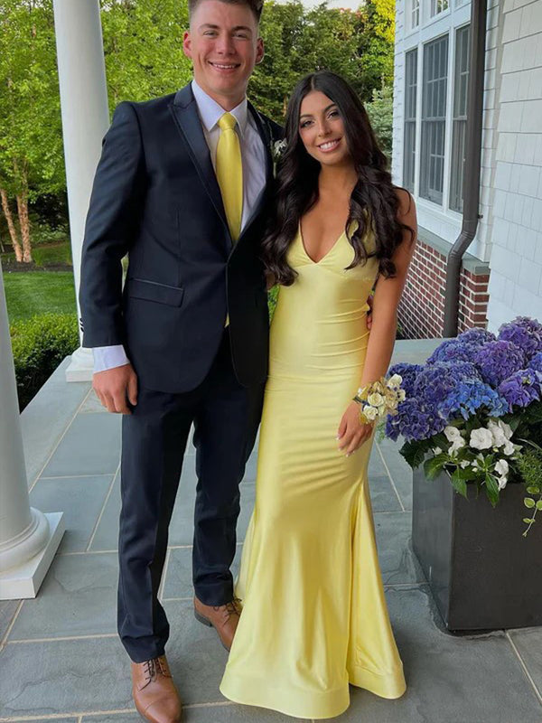 Formal Yellow Mermaid Backless Long Evening Prom Dresses, V-neck Prom Dress, MR0260