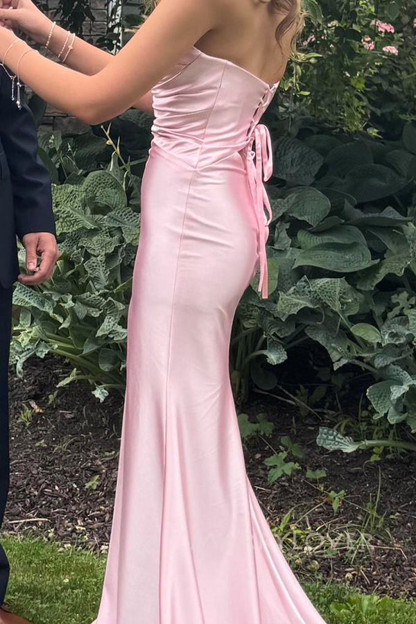 Gorgeous Pink Satin Side Slit Long Evening Prom Dresses, Sweetheart Prom Dress, MR0144