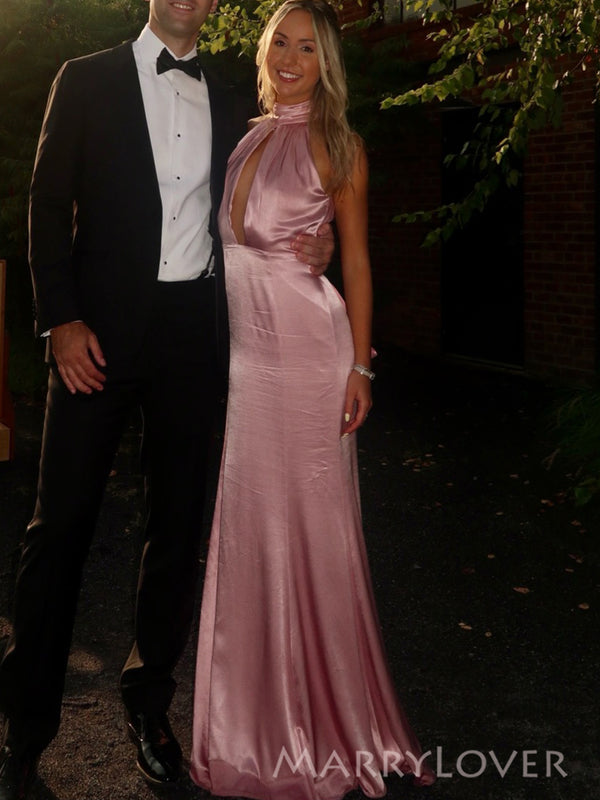 Halter Pink Silk Mermaid Long Evening Prom Dresses, MR0256 Halter Pink Silk Mermaid Long Evening Prom Dresses, MR0256