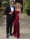Mermaid Side Slit Satin Long Evening Prom Dresses Strapless, MR0223