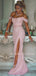 Pink Sequin Sexy Off Shoulder Side Slit Long Evening Prom Dresses, Cheap Custom Prom Dresses, MR7233 Pink Sequin Sexy Off Shoulder Side Slit Long Evening Prom Dresses, Cheap Custom Prom Dresses, MR7233