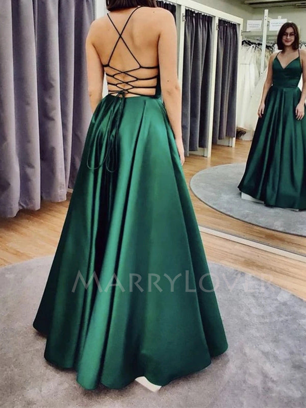 Sex Backless A-Line Satin V Neckline Long Evening Prom Dresses, Long Party prom dresses, MR7041 Sex Backless A-Line Satin V Neckline Long Evening Prom Dresses, Long Party prom dresses, MR7041