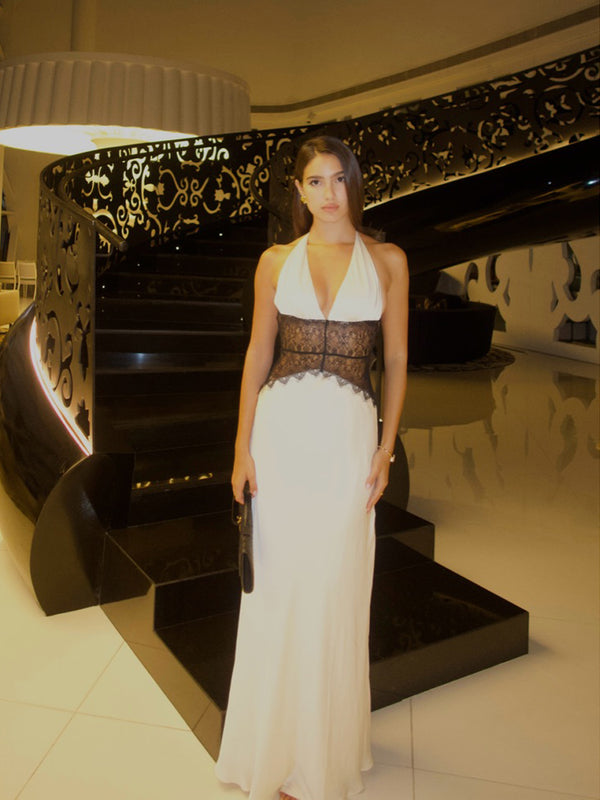 Sexy Backless White Black Lace Long Evening Prom Dresses, Deep V-neck Prom Dress, MR0244 Sexy Backless White Black Lace Long Evening Prom Dresses, Deep V-neck Prom Dress, MR0244