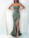 Simple Mermaid Strapless Long Evening Prom Dresses, Custom Side Slit Prom Dress, MR8565