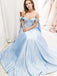 Off Shoulder A-Line Blue Long Evening Prom Dresses, MR7071