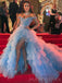 Off Shoulder Blue Tulle A-line Long Evening Prom Dresses, Custom Prom