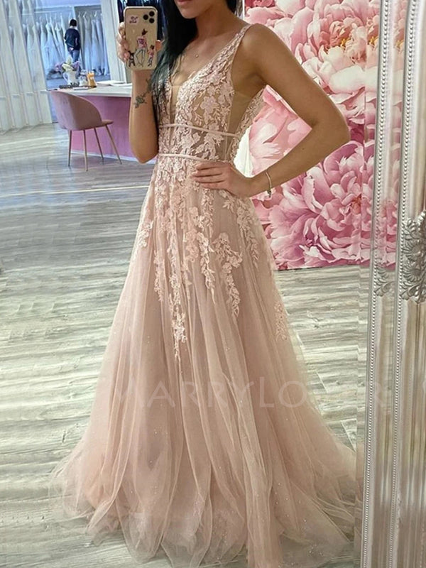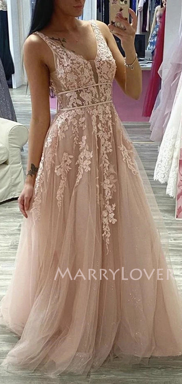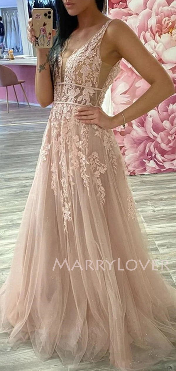 Deep V Neck Beaded See Through Lace Long Evening Prom Dresses, MR7142 Deep V Neck Beaded See Through Lace Long Evening Prom Dresses, MR7142