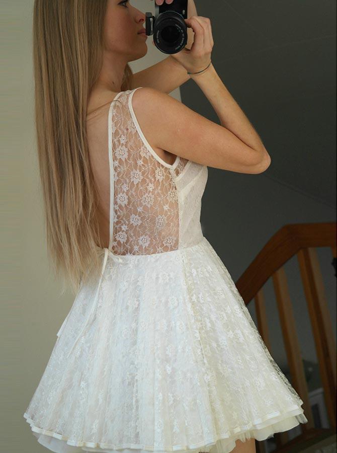 Halter Full Lace Sleeveless V-back Cute Short Homecoming Dresses, HD0525