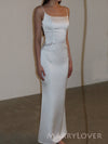 Simple White Satin Mermaid Long Evening Prom Dresses, Spaghetti Straps wedding Dress, MR9484