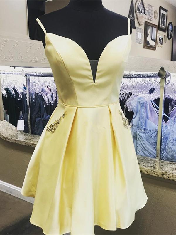 Spaghetti Straps V-neck Beading Homecoming Dresses With Pockets, HD0533 Spaghetti Straps V-neck Beading Homecoming Dresses With Pockets, HD0533