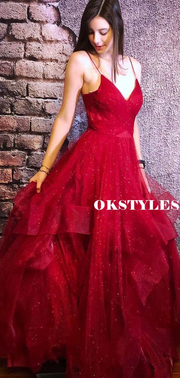 Sparkly Spaghetti Straps V-neck Backless Long Organza Prom Dresses, PD0643 Sparkly Spaghetti Straps V-neck Backless Long Organza Prom Dresses, PD0643